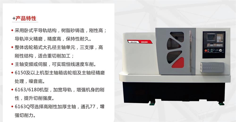 數(shù)控車床是市場(chǎng)上常見的普通車床的升級(jí)換代產(chǎn)品,對(duì)比普通數(shù)控車床,具有操作方便、加工質(zhì)量穩(wěn)定、加工工件光潔度高、全防護(hù)、切削液循環(huán)使用、環(huán)保性能好等特點(diǎn)。該類數(shù)控車床適用于加工軸類零件,螺紋、圓弧、圓錐及回轉(zhuǎn)體的內(nèi)、外曲面。6150及以上配置三檔變速箱,可以實(shí)現(xiàn)強(qiáng)力切削,滿足大切削量的加工要求。
